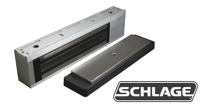 M400 Series electromagnetic locks from Schlage are designed with the unique bayonet mounting feature makes installation easier, allowing the installer to have their hands free during the mounting process. All M400 Series electromagnetic locks are symmetrical with field-selectable handing, allowing optimum placement of the magnet no matter the application. They are designed to provide automatic voltage sensing for 12 and 24 volts along with polarity protection to make wiring less complex. Single and double door models are offered in standard configurations. Plus versions of these models with “P” designations add intelligent sensing and reporting features needed to integrate with access control systems along with additional available options. Kits are also available for top jam, double door, and glass door applications.